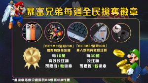 為鼓勵暴富兄弟會員衝擊高額排行,現特別開多個『#全民搶奪徽章』活動,於『真人娛樂高額排行榜』及『體育高額排行榜』額外獲得徽章既暴富BB,每星期仲可以額外參加抽『#全民搶奪徽章』活動既特別獎品,記住快D同我地攻榜登上頂峰啦!
